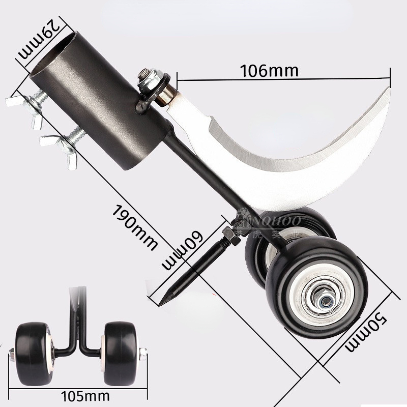 1- Foice Curvada: A foice de titanium é perfeita para eliminar os matos de maneira rápida nas fendas do seu passeio, seu design curvado junto da sua afiação garantem que não sobrem nada por onde ela passa.
